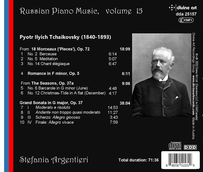 Divine ArtTchaikovsky: Russian Piano Music, Vol. 15 / Argentieri