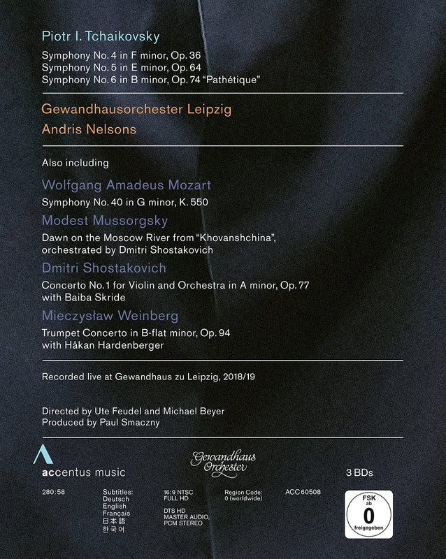 Accentus MusicTchaikovsky: Symphonies Nos. 4, 5 & 6 / Nelsons, Leipzig Gewandhaus Orchestra [Blu-ray]