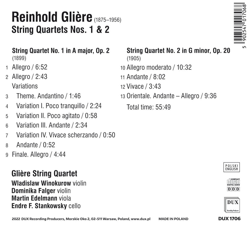 DUXGlière: String Quartets Nos. 1 & 2 / Glière String Quartet