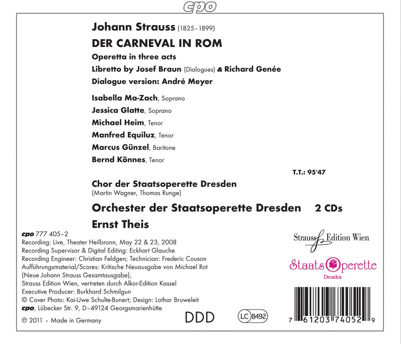 CPOStrauss: Der Carneval In Rom (The Carnival In Rome) / Theis, Ma-Zach, Glatte, Heim, Dresden Staatsoperette