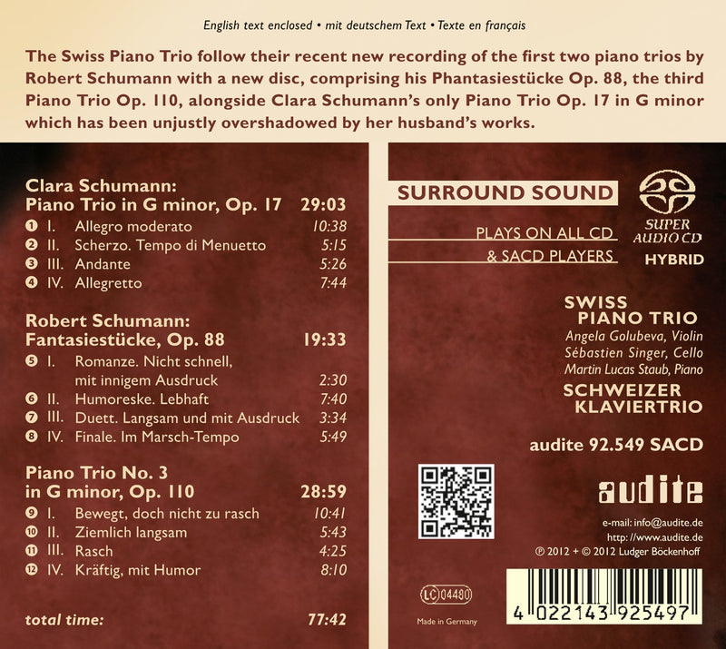 Audite MusikproduktionRobert & Clara Schumann: Piano Trios / Swiss Piano Trio