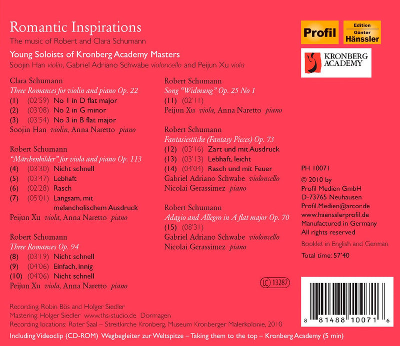 SCHUMANN Märchenbilder. 3 Romances. Widmung. Fantasy Pieces. Adagio and Allegro. C. SCHUMANN 3 Romances, op. 22 • Kronberg Academy Masters • PROFIL...