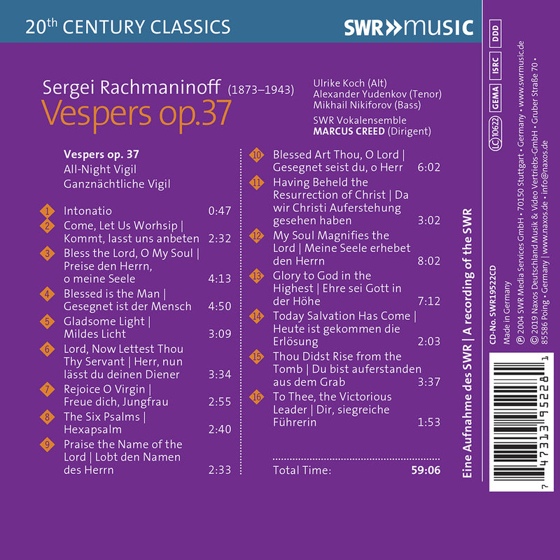 SWRRachmaninov: All-night Vigil, "Vespers"