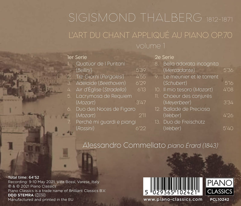 Piano ClassicsThalberg: L'Art du Chant Applique au Piano, Op.70, Vol. 1 / CommellatoThalberg has a reputation as the only pianist who made Liszt feel nervous, but he also won praise from Mendelssohn for the...