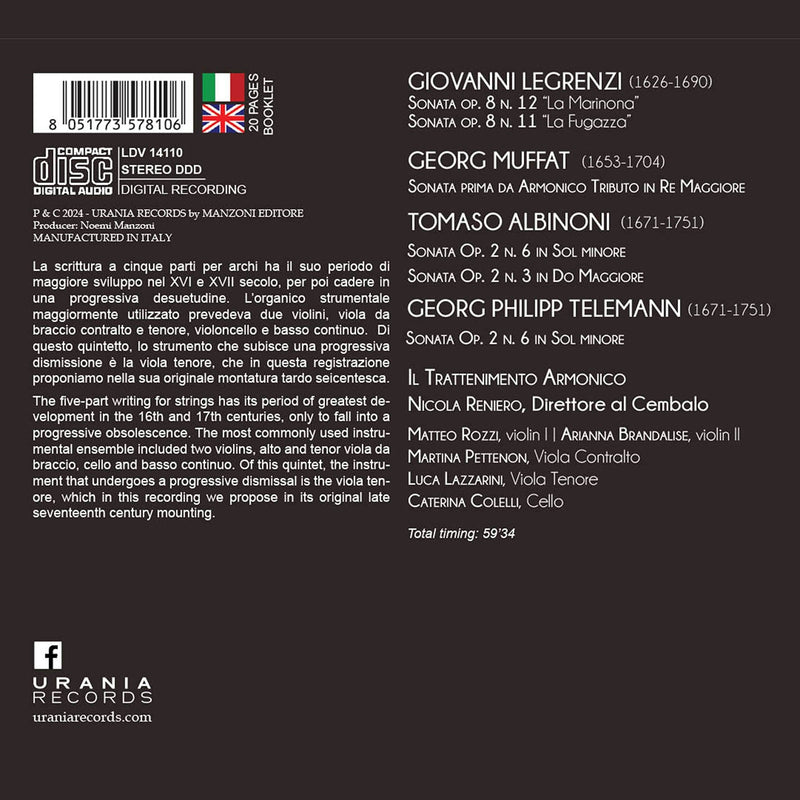 Urania RecordsAlbinoni, Legrenzi, Muffat & Telemann: A Cinque - String Sonatas PURGATORY