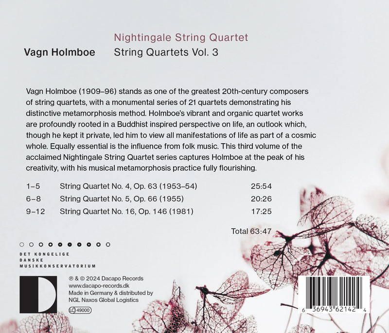 Dacapo ClassicalHolmboe: String Quartets, Vol. 3 / Nightingale String QuartetVagn Holmboe (1909-96) stands as one of the greatest 20th-century composers of string quartets, with a monumental series of 21 quartets demonstrating...