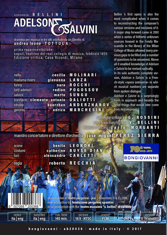 BongiovanniADELSON E SALVINIBellini 's first opera is also the most complicated when it comes to reconstructing the composer's various versions and revisions of it....