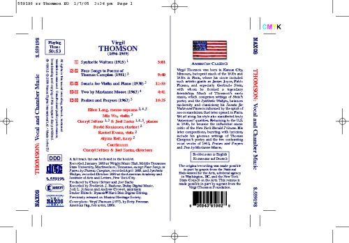 The current offering by James Sedares and the New Zealand Symphony is the best [Thomson recording] yet, with a big, clear sound and some virtuoso work from several sections, for example, the brass. As a bonus, the New Zealanders include Pilgrims and Pioneers, here recorded for the first time. (Thomson wrote this in 1964 for John Houseman's Journey to America, a one-reel film that was shown four times an hour in the U.S. Pavilion at the New York World's Fair.) Finally, this recording's fine liner notes by Marina and Victor Ledin include Thomson's own program notes from the first performances of these works.