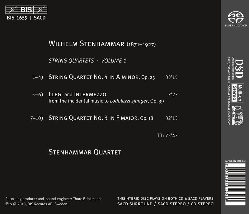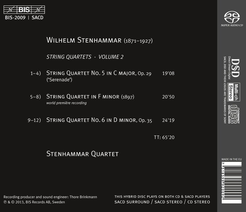BISStenhammar: String Quartets No 5 & 6 / Stenhammar QuartetSTENHAMMAR String Quartets: No. 5 in C, op. 29, “Serenade;” in f; No. 6 in d, op.35 • Stenhammar Qrt • BIS...