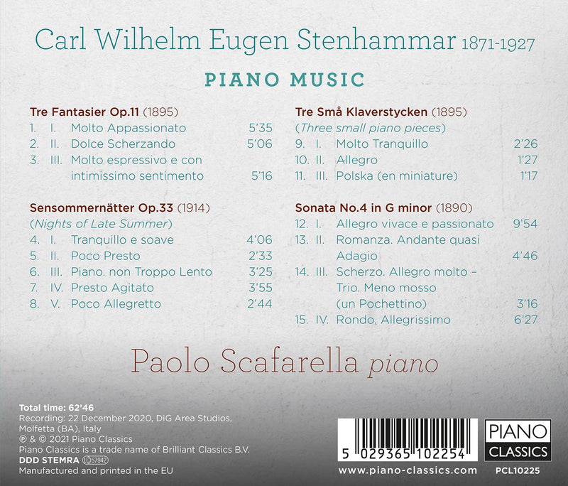 Piano ClassicsStenhammar: Piano Music / ScafarellaCarl Stenhammar (1871-1927) trained as a pianist, and Brahms’s epic D minor Concerto held no fears for him. His writing for the...
