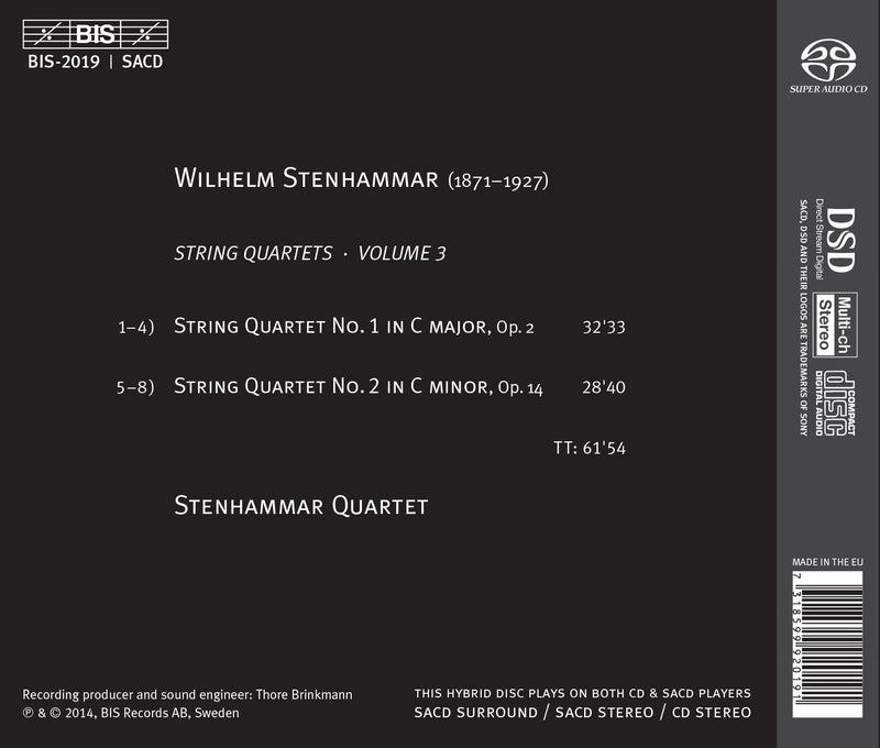 BISStenhammar: String Quartets Nos. 1 & 2 / Stenhammar QuartetBetween 1894 and 1916 Wilhelm Stenhammar composed a total of seven string quartets, of which one (F minor, 1897) was withdrawn immediately...
