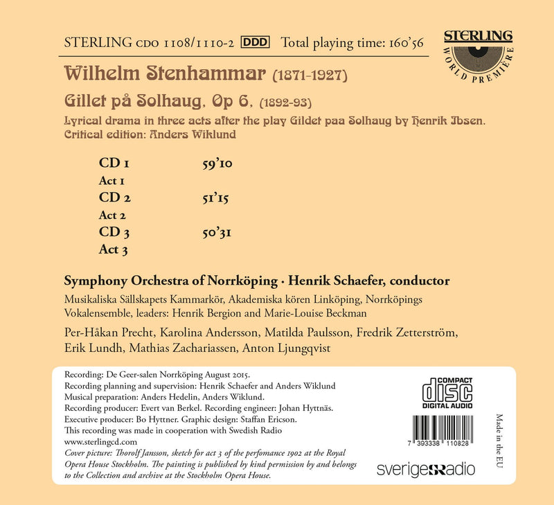 Sterling RecordsStenhammar: Gillet pa Solhaug / Schaefer, Symphony Orchestra of Norrkoping and Choruses"By chance, been enaged to a small pupil in Richard Andersson's music school in the autumn of 1891. Her name was Signe....