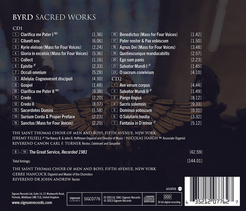 On SaleSignum ClassicsByrd: Sacred Works / Filsell, Saint Thomas Men & Boys Choir, NYCMarking the quadricentenary of Byrd’s death in 2023, the Men & Boys Choir of Saint Thomas, Fifth Avenue, New York, recreates the...