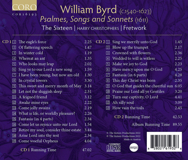 On SaleCoroByrd: Psalmes, Songs & Sonnets (1611) / The Sixteen, Fretwork