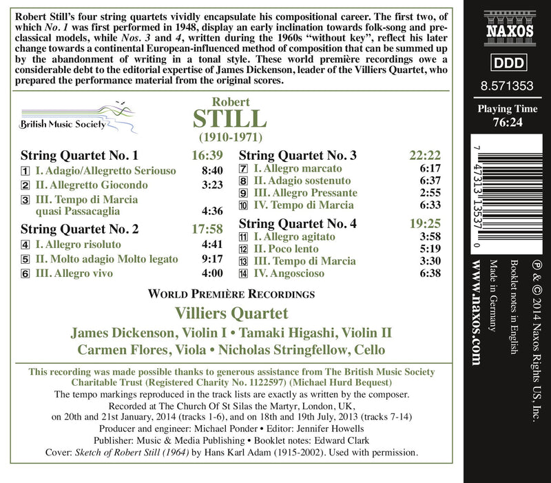 On SaleNaxosStill: The 4 String QuartetsRobert Still’s four string quartets vividly encapsulate his compositional career. The first two, of which No. 1 was first performed in 1948,...