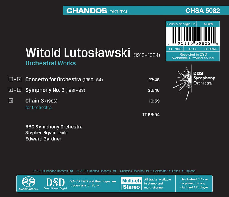 The BBC Symphony Orchestra plays this sometimes tricky music with great proficiency and understanding, and Gardner’s inspiring leadership, plus first class Chandos sound, enables us to hear every strand of the texture.