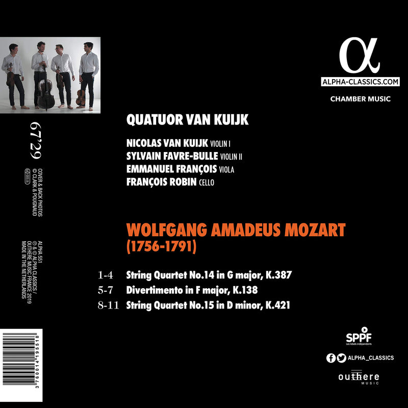 AlphaMozart: String Quartets, K. 387 & 421 & Divertimento, K. 138 / Quatuor Van Kuijk