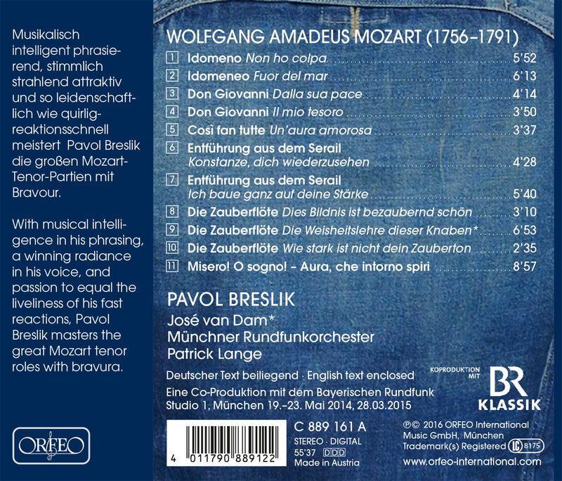 OrfeoMozart: Arias / Breslik, Lange, Munich Radio Orchestra