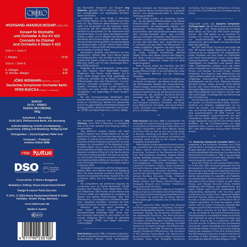 OrfeoMozart: Concerto for Clarinet & Orchestra A Major, K622