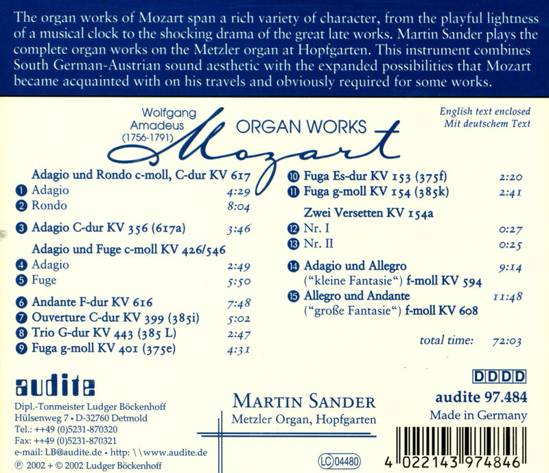 Ars ProduktionMozart: Works for String Trio / Trio Oreade