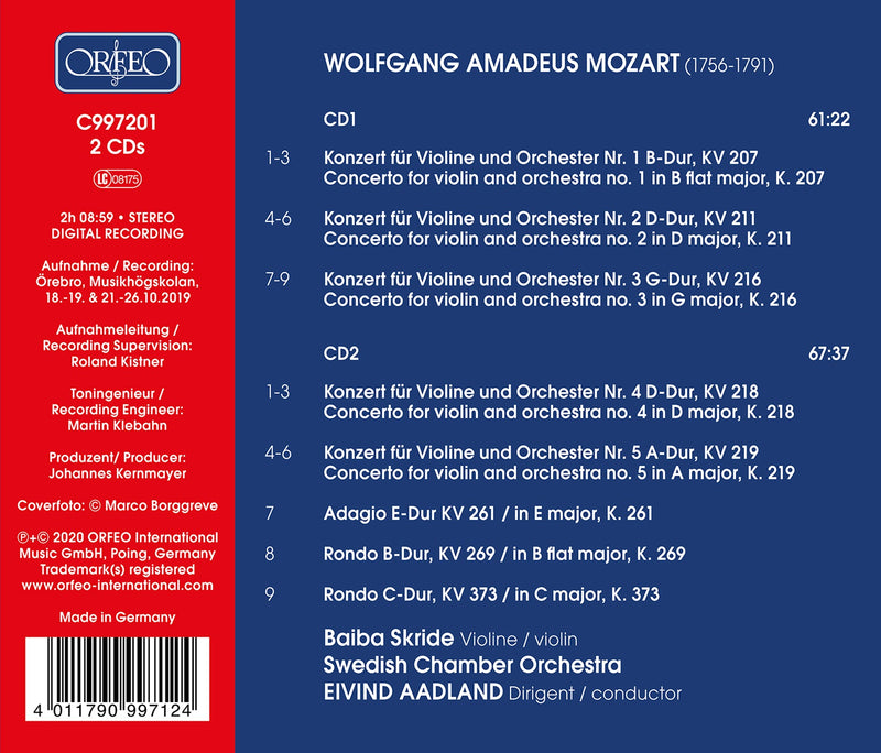 OrfeoMozart: Violin Concertos Nos. 1-5 / Skride, Aadland, Swedish Chamber Orchestra