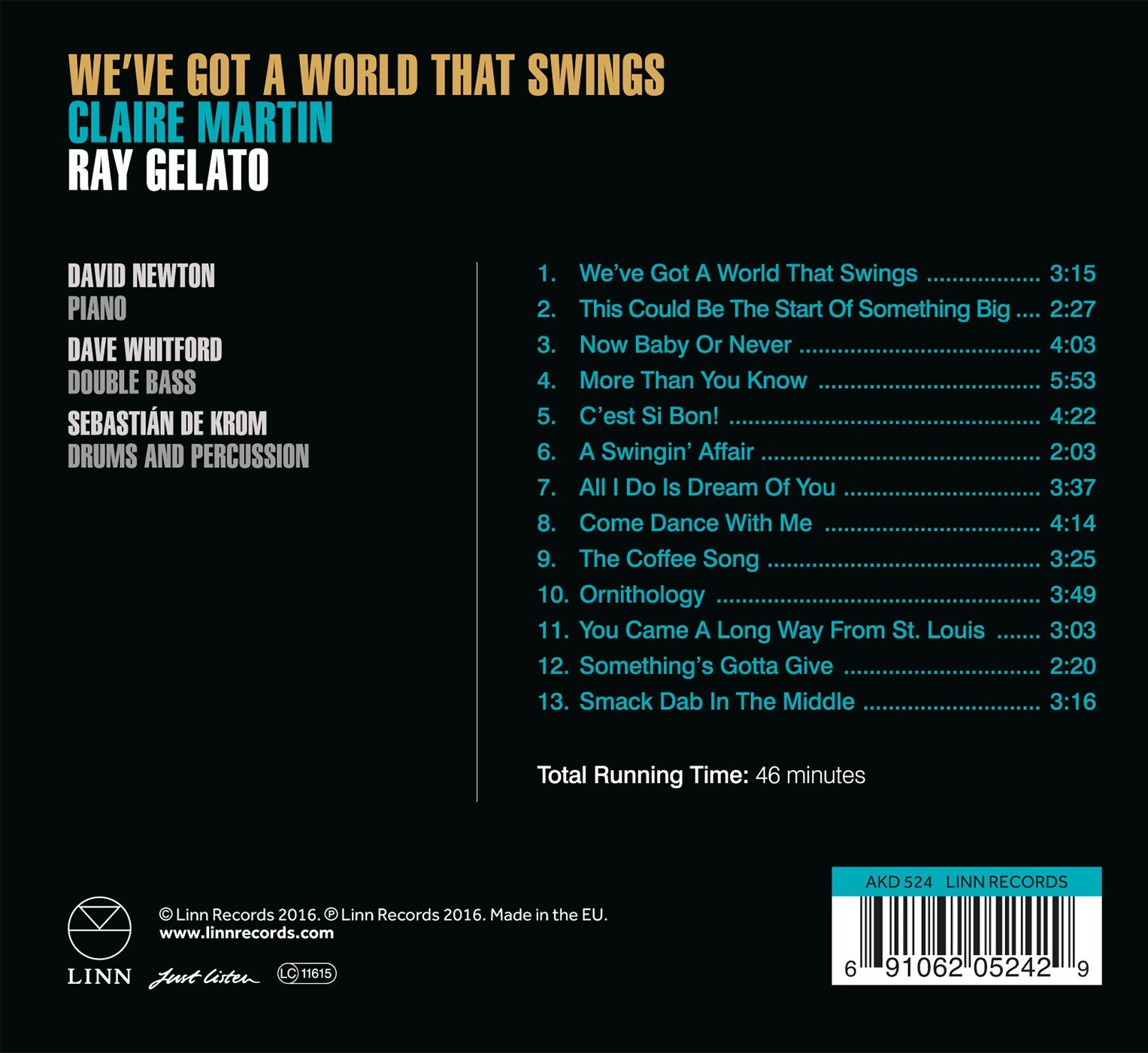 Artists at the height of their careers, Claire Martin and Ray Gelato have a collection of bestselling jazz albums to their names, and have toured extensively across the UK. After their tour dates consistently sold out, the duo took to the studio to record this album, which includes some of the greatest pieces in the Great American Songbook. Claire’s breadth of style and range is beautifully displayed in these tracks. Her interpretations of these songs are vocal masterclasses. A trio of top-notch musicians accompanies the duo on this recording, including pianist David Newton, bassist Dave Whitford, and drummer Sebastian de Krom.