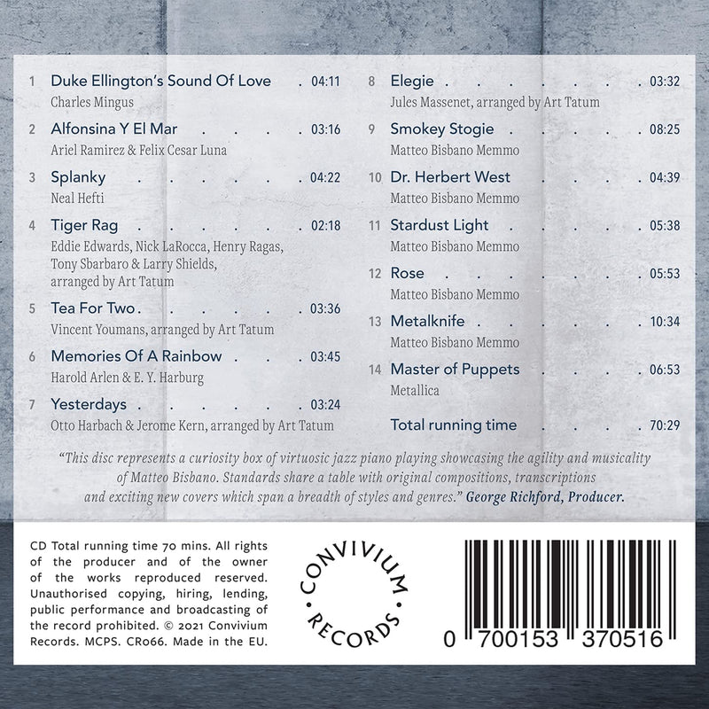 "This album represents a curiosity box of virtuosic jazz piano playing showcasing the agility and musicality of Matteo Bisbano. Standards share a...