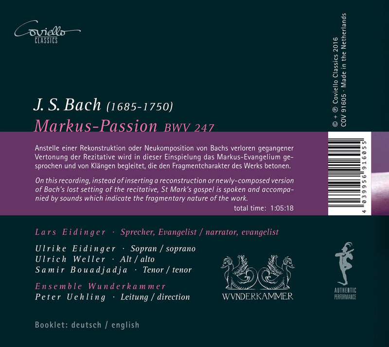Johann Sebastian Bach’s Markus-Passion BWV 247 was originally performed on Good Friday in 1731. Most of the music has been lost, however,...