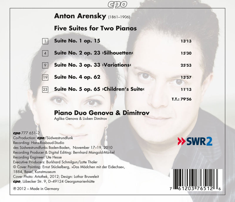 CPOArensky: Five Suites For Two Pianos / Genova & Dimitrov Piano Duo