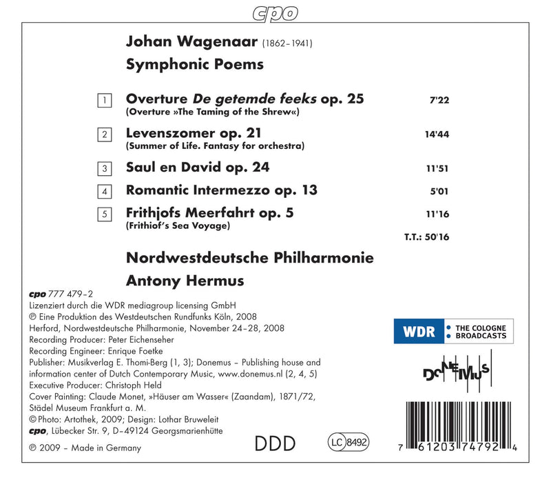 WAGENAAR De getemde feeks: Overture. Levenszomer. Saul en David. Romantisch Intermezzo. Frithjofs Meerfahrt • Antony Hermus, cond; NW German Phil • CPO...