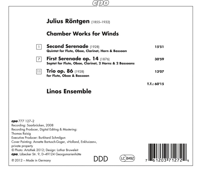 RÖNTGEN Serenade (Wind Quintet). Serenade (Wind Septet). Trio for Flute, Oboe, and Bassoon • Linos Ens • CPO 777 127-2 (60:15) As...