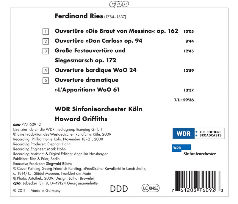 CPORies: Concert Overtures / Griffiths, WDR Sinfonieorchester Koln