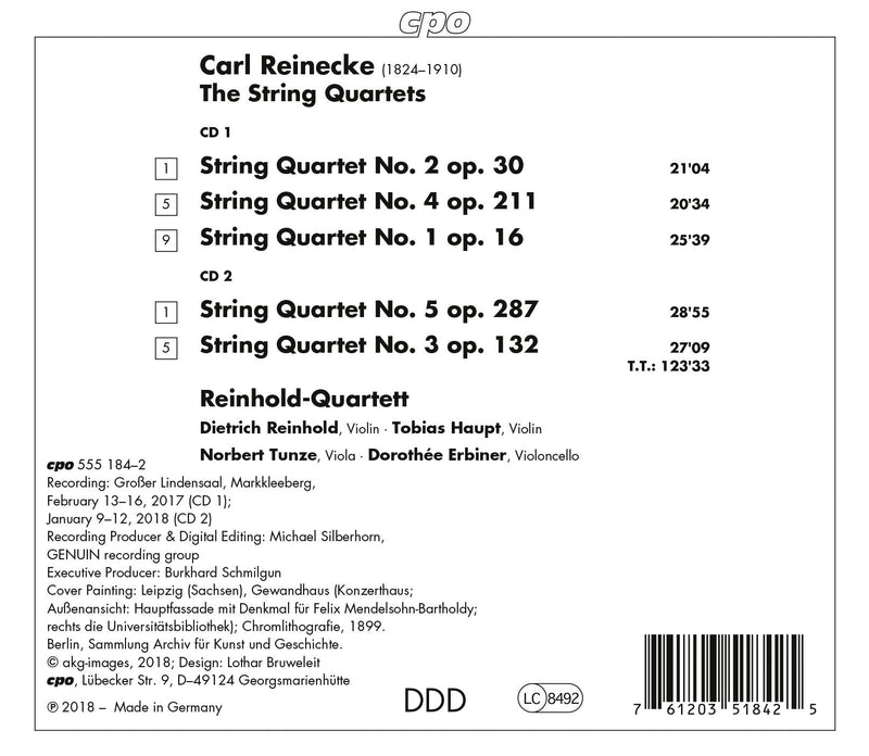 Five string quartets by Carl Reinecke from all the phases of his career, from it's beginnings to his old age, are extant....