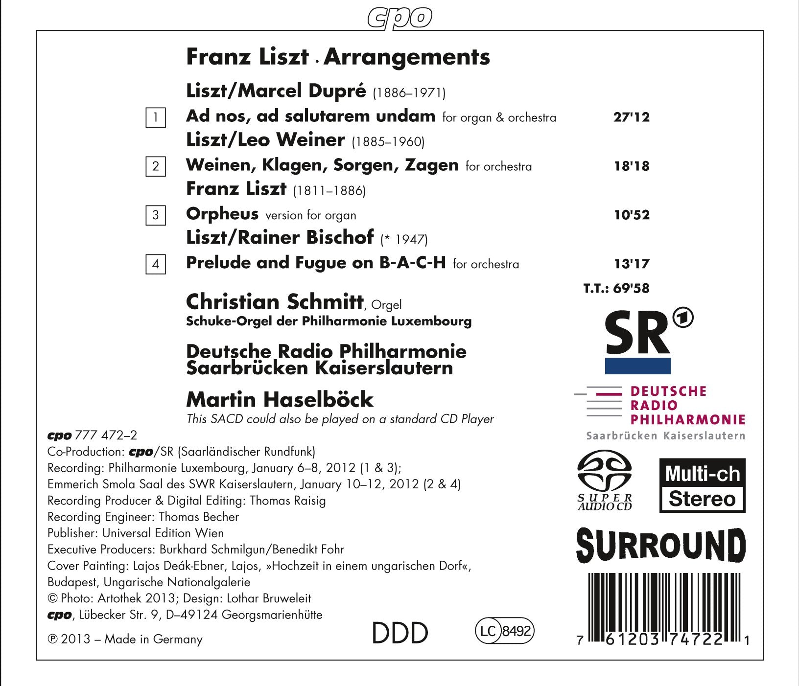 LISZT Ad nos, ad salutarem undam Fantasy and Fugue for organ and orchestra (arr. Dupré). Weinen, Klagen, Sorgen, Zagen (orch. Weiner). Orpheus,...