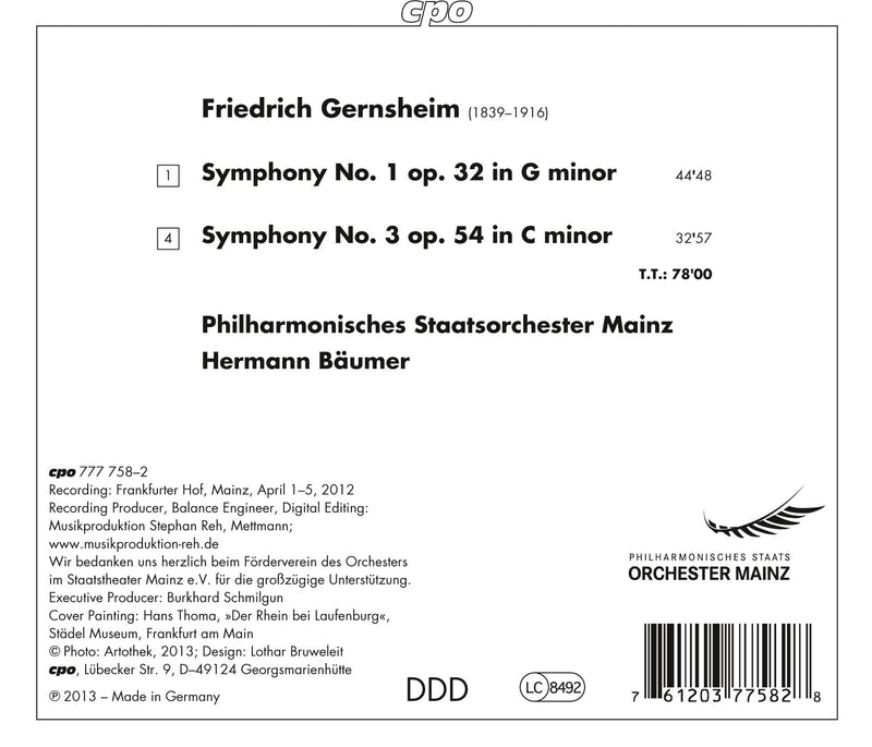 CPOFriedrich Gernsheim: Symphonies 1 & 3