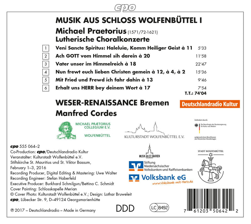 CPOPraetorius: Lutheran Choral Concerts / Cordes, Weser-Renaissance Bremen