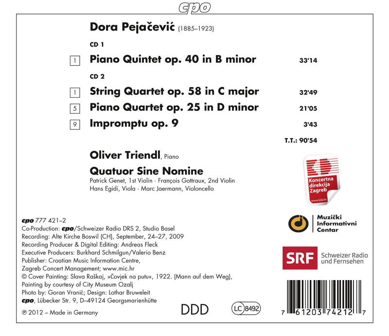 Pejacevic Piano Quintet in b, Op. 40. String Quartet in C, Op. 58. Piano Quartet in d, Op. 25. Impromptu, Op. 9...