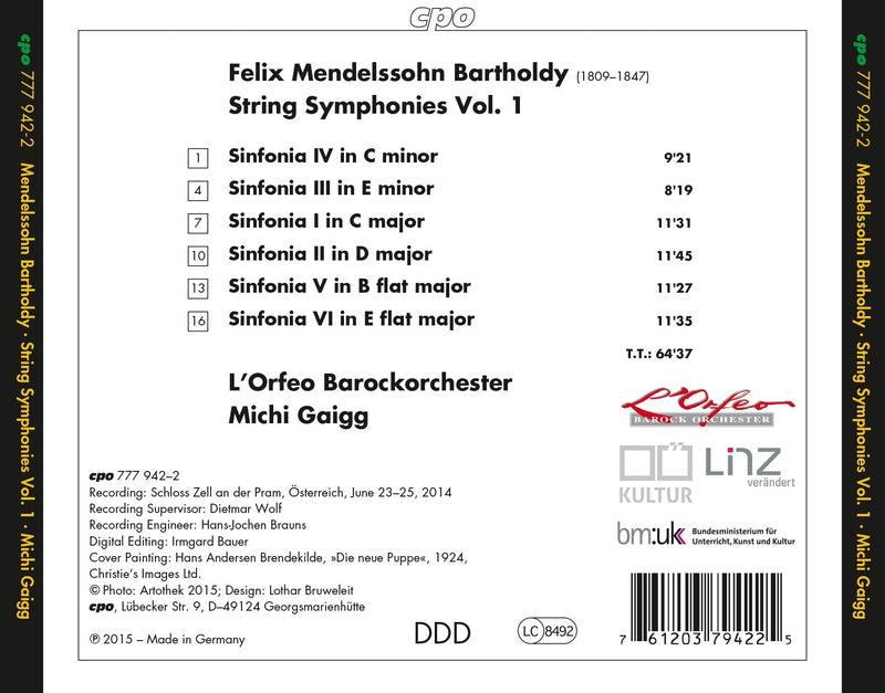CPOMendelssohn: String Symphonies Vol. 1 / Gaigg, L'Orfeo Barockorchester