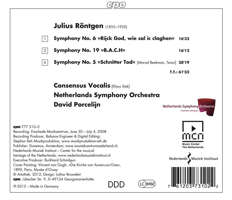 CPORontgen: Symphonies Nos. 6, 5, 19 / Porcelijn, Netherlands Symphony Orchestra, Consensus Vocalis