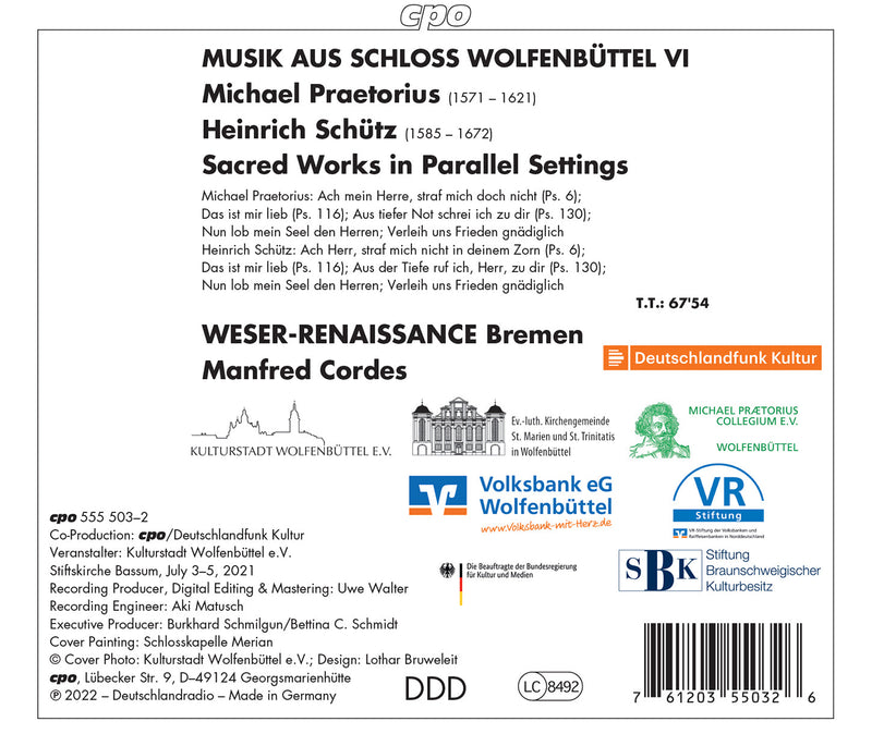In our series "Music from Wolfenbüttel Castle," the sixth concert in the series featured and recorded parallel settings of sacred works by...