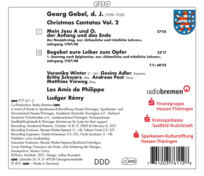 Vol. 2 features Gebel’s Cantatas from the 1747-48 cycle that he wrote for church services on New Year's Day and the 1st...