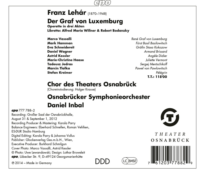 CPOLehar: Der Graf von Luxemburg / Inbal, Osnabrück Symphony