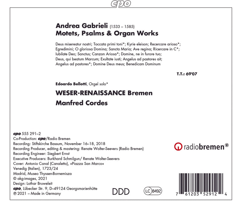 On SaleCPOA. Gabrieli: Motets & Organ Works / Weser-Renaissance Bremen