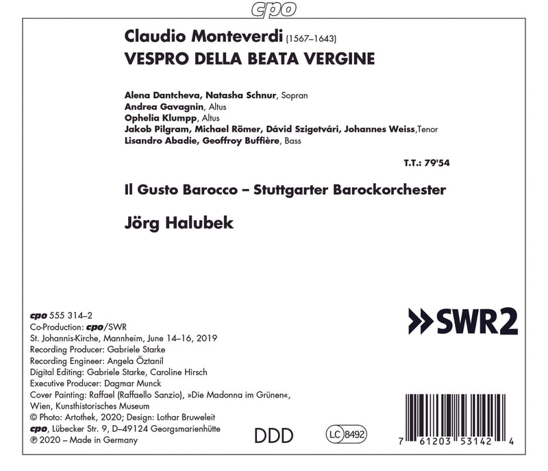 On SaleCPOMonteverdi: Vespro Della Beata Vergine / Halubek, Il Gusto Barocco-Stuttgarter Barockorchester