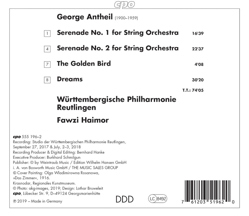 CPOAntheil: Serenades Nos. 1 & 2, Golden Bird, Dreams / Haimor, Wurttemberg Philharmonic