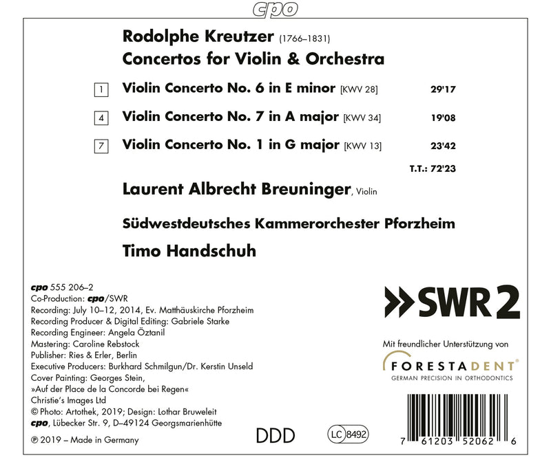 CPOKreutzer: Violin Concertos Nos. 1, 6 & 7 / Breuninger, Handschuh, Sudwestdeutsches Kammerorchester Pforzheim