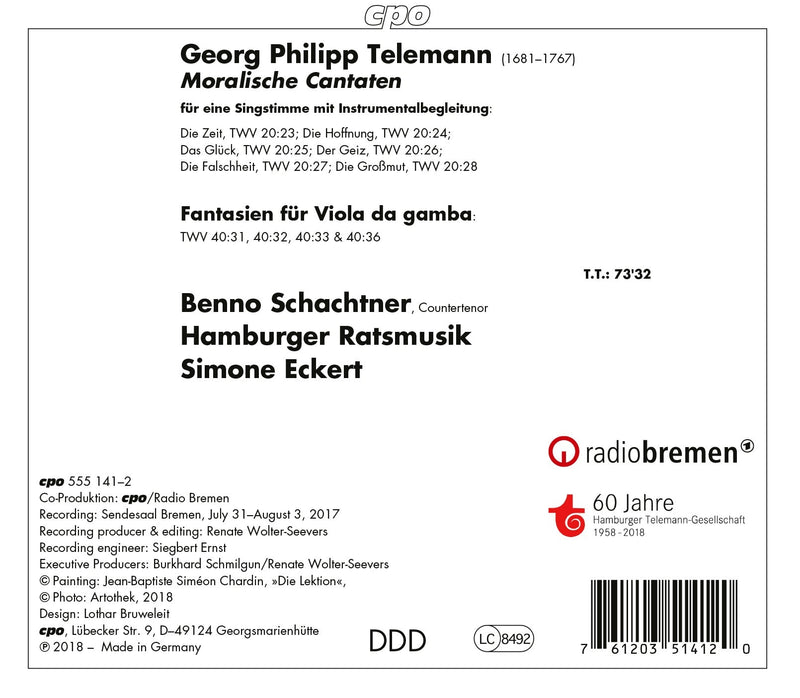 CPOTelemann: Moralische Cantaten / Eckert, Schachtner, Hamburger Ratsmusik