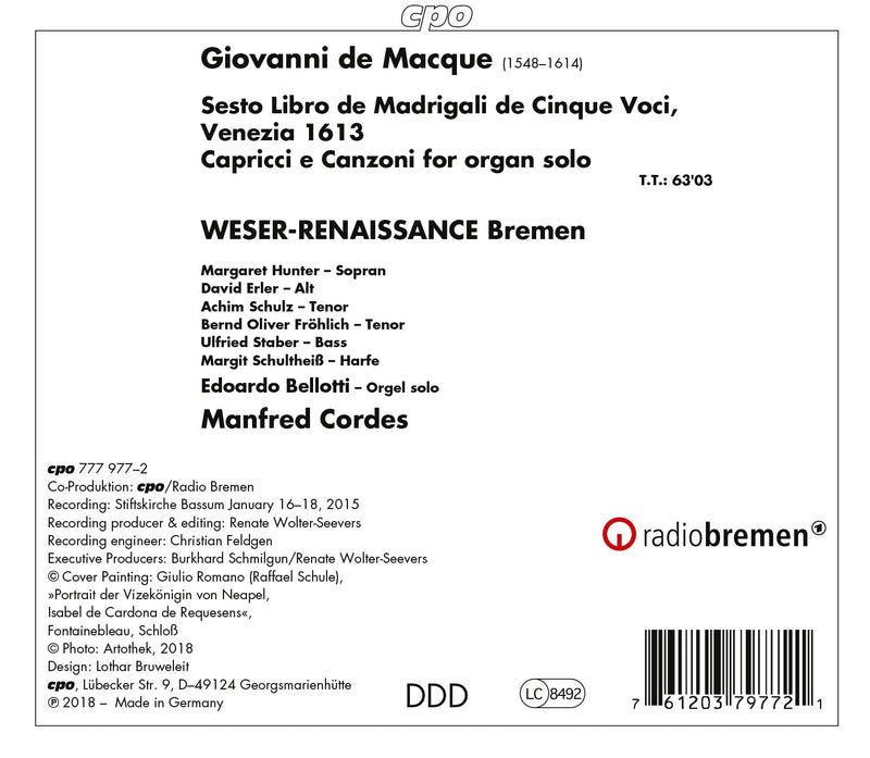 CPOMacque: Madrigali & Organ Works / Cordes, Bellotti, Wese-Renaissance Bremen