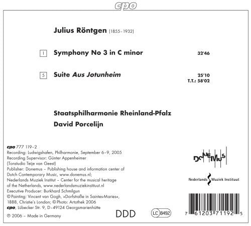 Includes work(s) by Julius Röntgen. Ensemble: Rheinland-Pfalz State Philharmonic Orchestra. Conductor: David Porcelijn.