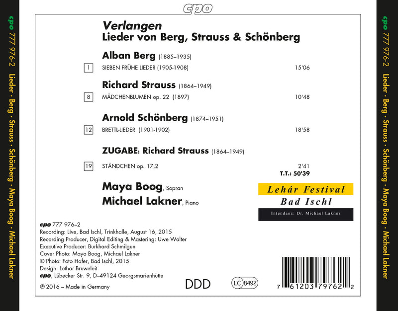 Verlangen means Desire, and that is what these artists hope to portray with this new release of Lieder. Compositions include works from...